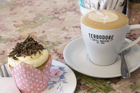 delicious Terbadore coffee, breakfast, lunch, and a wide selection of cupcakes, cheesecake and other sweet treats.